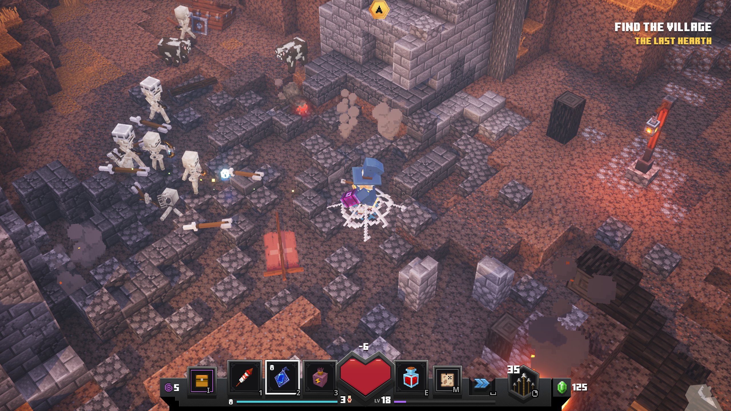 As with its parent game, there’s a wilful simplicity to Dungeons that makes it instantly likeable. Pick up a consumable and it’s automatically used, while your standard health potion is tied to a cooldown, freeing you from fiddly inventory management or rows of hotkeys. Even when an objective asks you to find the exit, your next step is clearly marked. Just like the footsoldiers in the Arch-illager’s zombie army, you can leave your brain at the door.